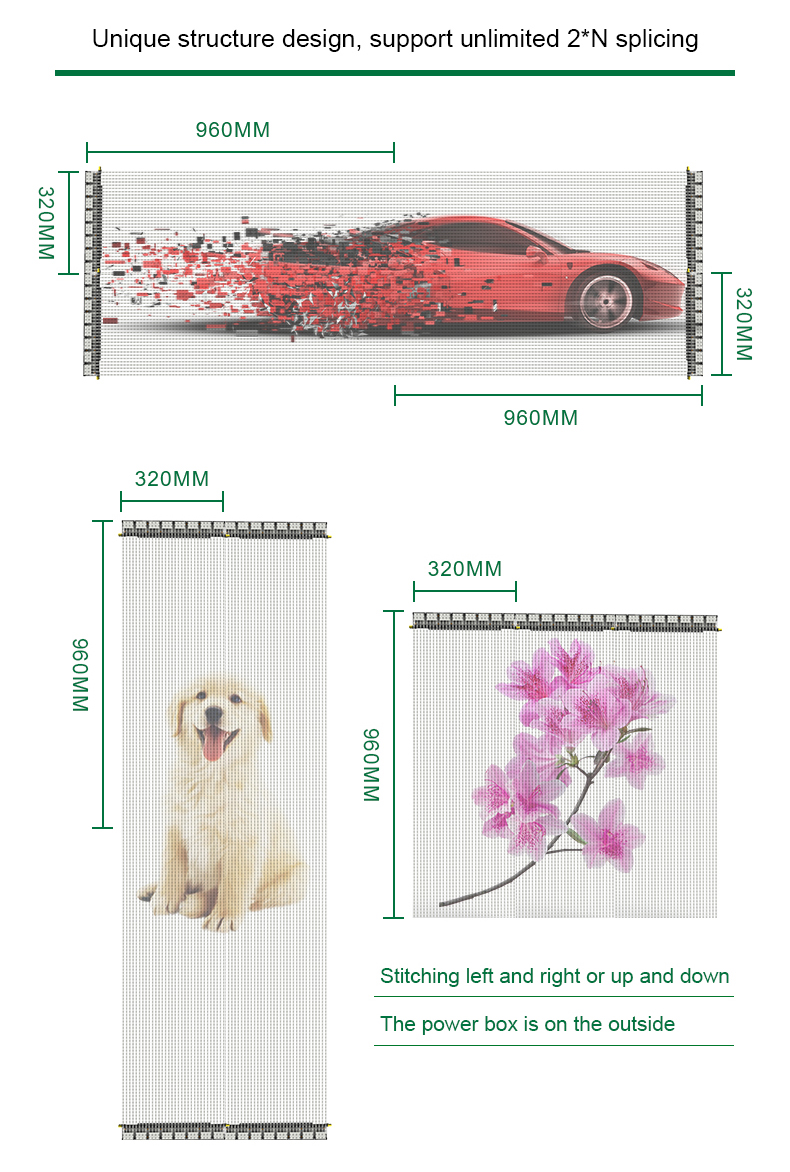 7. يمكن ربط الشاشة إلى اليسار واليمين أو لأعلى ولأسفل، مما يحقق ارتفاع أو عرض للشاشة يبلغ 1.92 متر وربط غير محدود في الاتجاه الآخر.